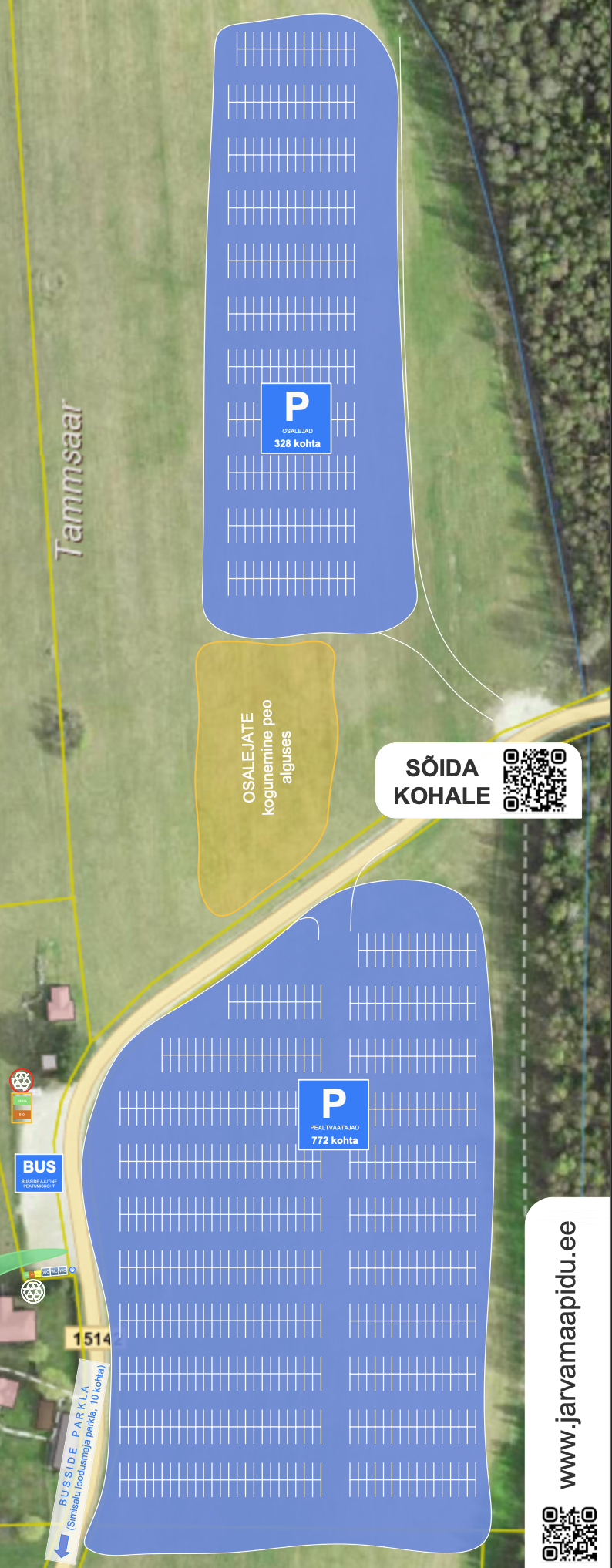 Järvamaa laulu- ja tantsupeo parkimisala on planeeritud lähedal olevale põllule. Parkimist reguleerivad inimesed. Palun varu aega peole saabumisel, et oleks aega rahulikult parkida ning jalutada esinemis väljakule.